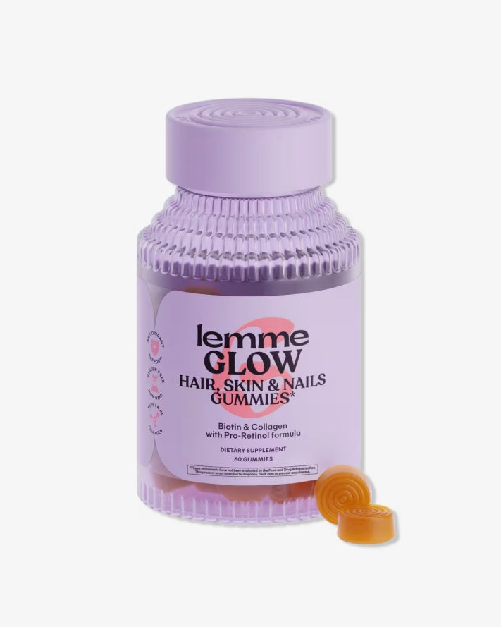 Lemme's Glow: Hair, Skin & Nails Gummies, with Ultimate beauty complex: Biotin and Zinc support healthy hair, skin and nails while a unique blend of Collagen Peptides, Vitamins A, C & E and Ionic Trace Minerals let you shine from the inside out.*